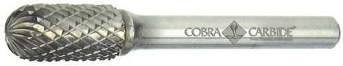 Cobra Carbide 10387 Micro Grain Solid Carbide Cylindrical Regular Length Burr with Radius End, Single Cut, Shape C SC-11, 1/4" Shank Diameter, 1/8" Head Diameter, 1/2" Cutting Length (Pack of 1)