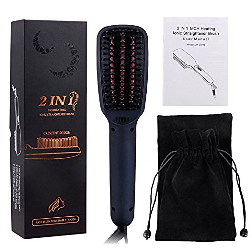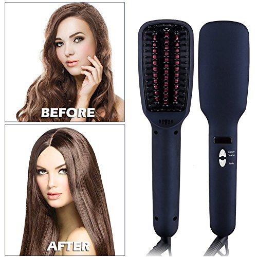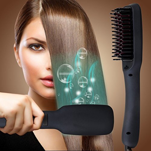 Studio : Yumei Publisher : Yumei Binding : Health and Beauty Product Description -YUMEI, DISCOVER YOUR TRUE BEAUTY Are you still plagued by hair dry and damaged? Do you have any fears about the damage of chemically straightened hair? YUMEI hair straightener brush will help you right now! You can experience gorgeous sleek salon hair styles every day at home, in hotel or anywhere you want. -2 IN 1 MCH Heating Ionic straightener brush! Metal Ceramic Heater (MCH) heating elements are small ceramic stones with self-limiting temperature characteristics. MCH stones have fast heating response time and plateau once the predefined reference temperature is reached. It gives even heat distribution and quick temperature recovery time. Gives you natural healthy silky looks rather than flat burnt look and leaves your hair easy to manage. -Advanced Ionic Technology: The built-in ionic generator emits amount of negative oxygen ions that can interact with the molecular particles in your hair to repair and smooth hair cuticle. They seal the hair cuticle reducing frizziness, split ends, knotting and leaving hair silky and lustrous. Thoroughly nourishing and strengthening hair, prevent hair dry and knotted. Show the hair gets the elaboration, double and bright! -5 Heat Temperatures Match Your Specific Hair Type Level 1: Around 150℃(300℉), suitable for first time user or user with thin and fine hair, or bleached hair. Level 2: Around 170℃(340℉), suitable for dyed or dark color hair. Level 3 Level 4: Around 190℃(380℉) to 210℃(410℉), suitable for normal or slightly curled hair. Level 5: Around 230℃(450℉), suitable for thick and very curly hair, or difficult to style hair. -Specifications: Input Voltage: 100-240V Product Size: 27*7*4cm Package Size:32.5*10*6cm Product Weight: 380 -Package Included: 1 x Hair Straightening Brush 1 x Black bag for packing brush 1 x User Manual 0