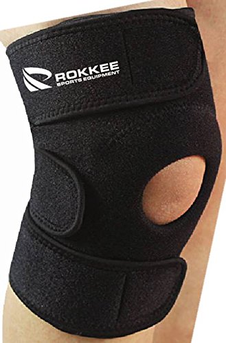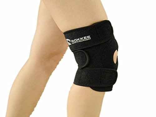 -. Title : Knee Support for all Sports By Rokkee Sports Equipment-Premium Quality-Waterproof-Black Breatheable Neoprene-Helps with Slight Sprains, Unstable knee, Knee Dislocation, Lateral and Collateral Ligament Injury, Running, Walking, Arthritis-Adjustable Compression-Open Patella Design-Size From 13" to 18"-Three Strap System-Free Replacement or Money Back Guarantee