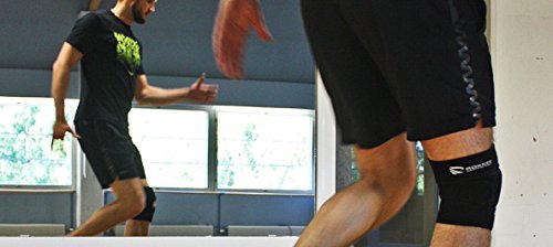 -. Feature : Three strap system for adjustable compression and custom fit / Suitable for all sports including water sports and martial arts / Breathable material keeps the knee dryer and cooler / Reinforced open patella design / One size fits all (13"-18")
