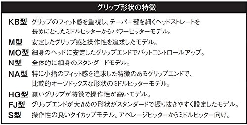 M(모리노):그립 엔드를 스탠다드와 타이 컵을 중간을 목적(목표) 설계.보다 안정 한 그립간과 조작성을 추구한 미들 히터부터 파워 히터용의 모델.