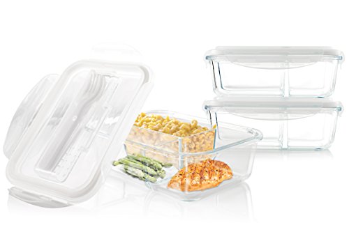 MEAL PREPPING MADE EASY: Treat yourself to healthy convenience with our glass 3-compartment meal prep containers. This glass bento set is carefully partitioned to keep the different food groups well separated, is thoughtfully-sized at 32oz to help with portion control, and is microwave, oven, freezer, and dishwasher-safe for convenience you’ll love. (LIDS are NOT oven and microwave safe)