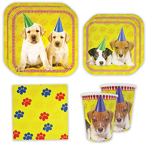 -. Feature : This delightful Puppy Party Pack has all the party basics you'll need for kids who are crazy about puppies! / Our Puppy Party Pack (Serves 16) includes 16 adorable dinner plates, 16 dessert plates, 20 fun lunch napkins and 16 paper cups! / Moms will love having everything for their little one's puppy celebration all together in one easy package! / Make lasting memories and breathe easy with this adorable, all-inclusive party pack picked especially with kids in mind. / Bring your puppy treats and get ready for a super popular celebration when you decorate your big day with our puppy party supplies!