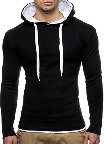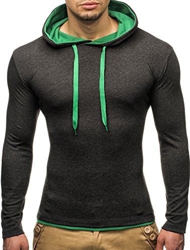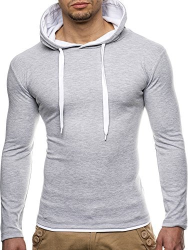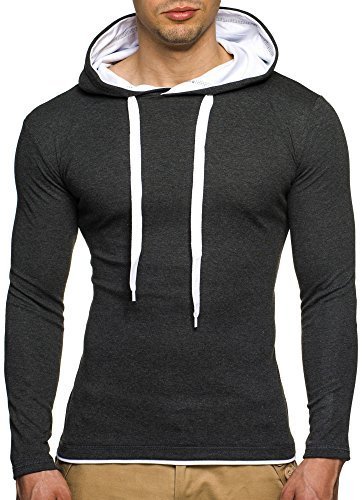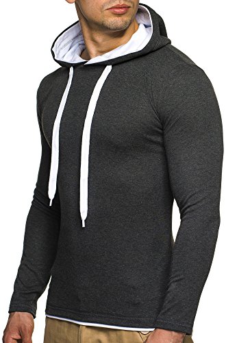 LEIF NELSON Herren Sweatshirt mit Kapuze LN2016 (XXL, Anthrazit-Weiss)