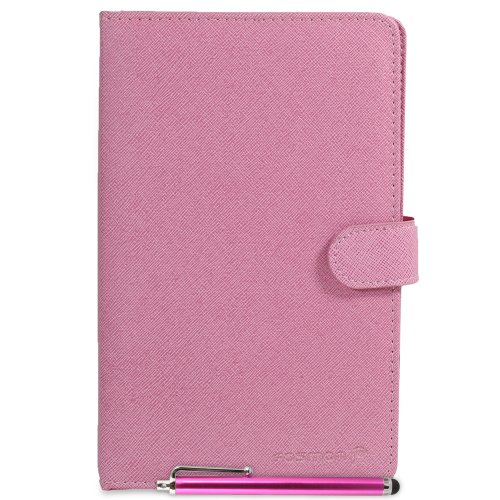 Fosmon Leather Carrying Case with Micro USB Keyboard and Stylus for 7 inch Tablets (Pink)