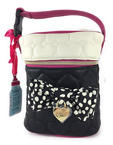 -. Title : Betsey Johnson Quilted Bone Black Duel Baby Bottle Holder Insulated Lunch Tote Bag
