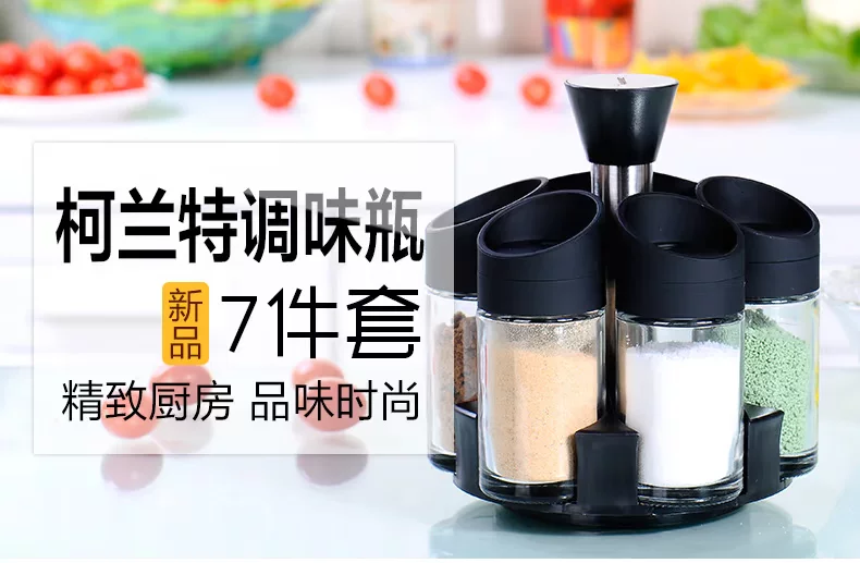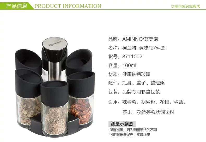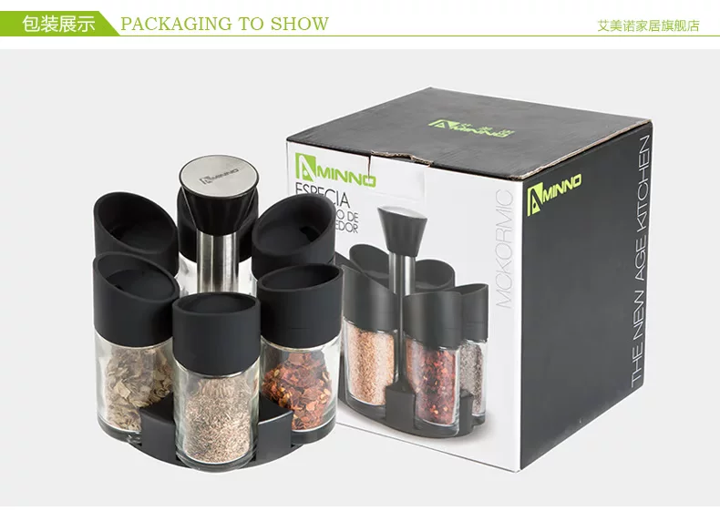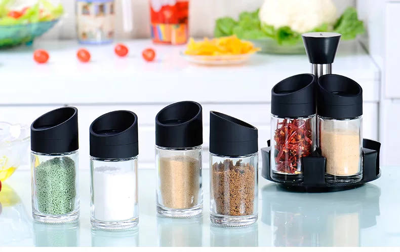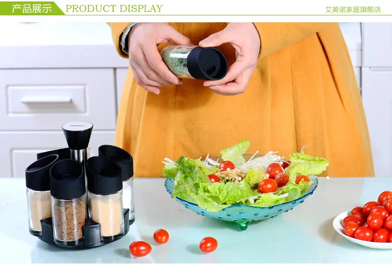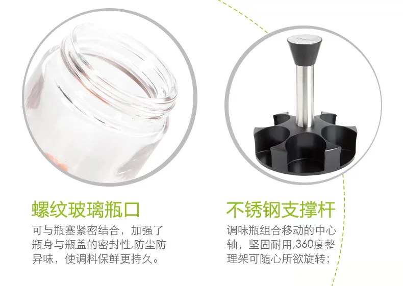 艾美诺调味瓶 玻璃佐料盒 创意无铅厨房调味用品旋转式调料罐套装