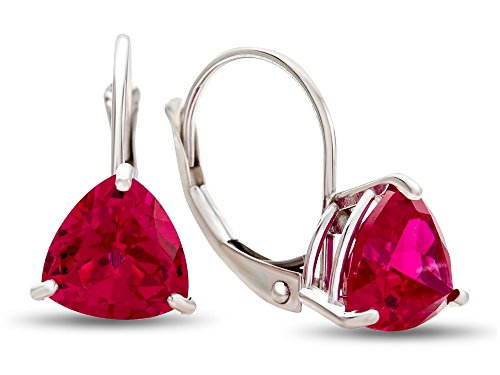 This dazzling 7x7mm Trillion Created Ruby Lever-back Earrings, crafted in 10 kt White Gold . This attractive design is set with 2 stones prong set medium to dark red Trillion Created Ruby eye clean clarityWarranty: - This item is covered by our exclusive Silver Shield Lifetime Warranty. This exclusive lifetime coverage is offered ONLY by Finejewelers so please shop with confidence, our quality is guaranteed for life!Feature