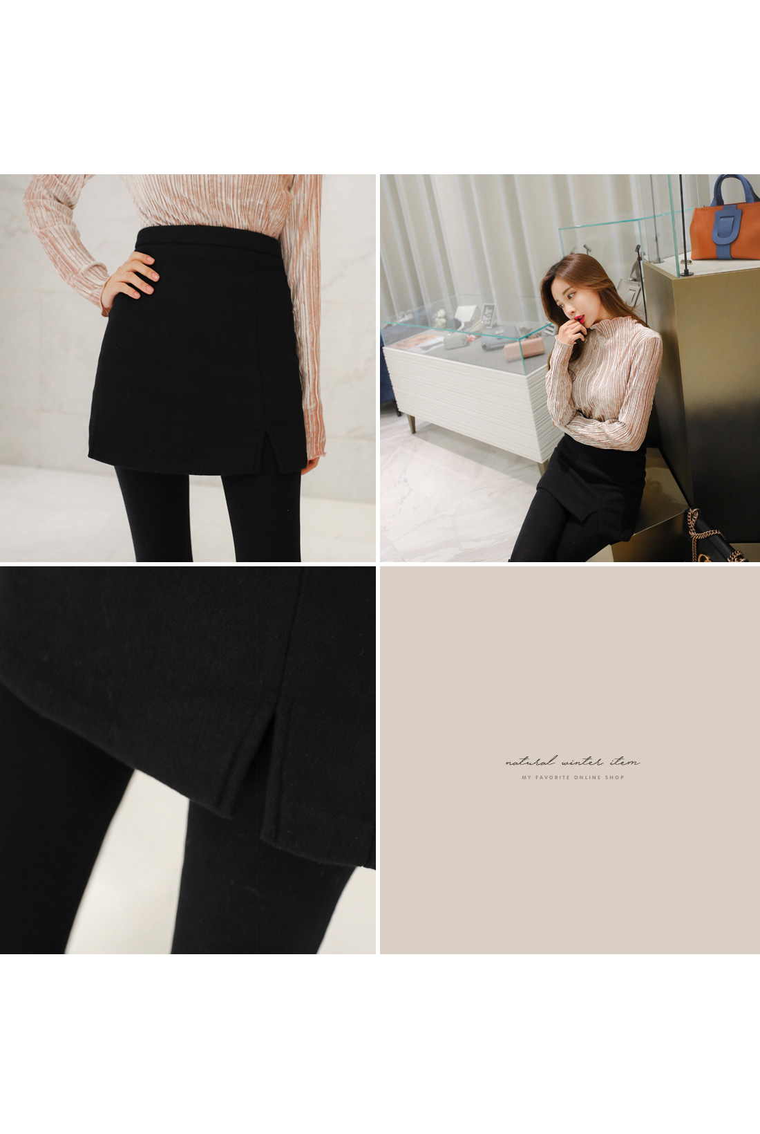 아크릴 혼방 소재 미니스커트에 안쪽으로 따뜻하게 준비된