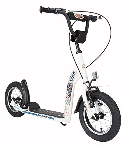-. Brand : Bikestar -. EAN : 4260184711178 -. Feature : Classic scooter designed in Germany with modern steel tube framework and eye popping metallic paint finish. / 12" air filled tires on lightweight, high-quality rims. Dont be fooled by foams or plastics. / Robust rear brake and skid proof foot board makes for a safe and secure ride. / Splash guards/fenders equipped on both wheels. / Adjustable break handgrips and hand protection device makes this scooter ideal for a child's small hands! -. IsAdultProduct : 0 -. IsAutographed : 0 -. IsMemorabilia : 0 -. Label : Star-Trademarks -. Manufacturer : Star-Trademarks -. Model : SC-12-ST-WHIT -. MPN : SC-12-ST-WHIT -. PackageQuantity : 1 -. PartNumber : SC-12-ST-WHIT -. ProductGroup : Sports -. ProductTypeName : OUTDOOR_RECREATION_PRODUCT -. Publisher : Star-Trademarks -. Studio : Star-Trademarks -. Title : Bikestar 12 inch (30.5cm) Kids Kick Scooter White