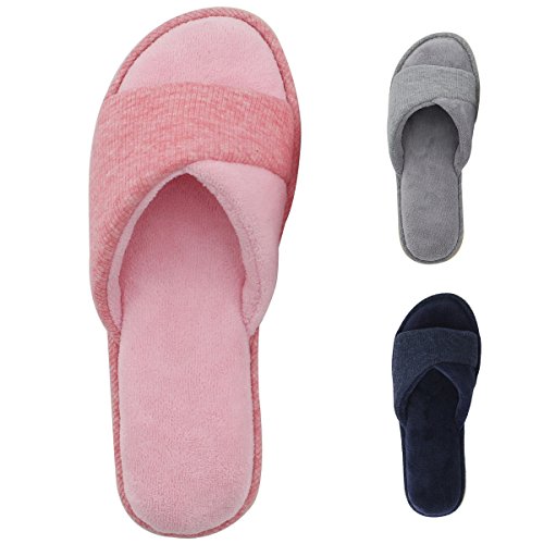 -. Title : HomeIdeas Women's Open Toe Terrycloth Slide House Slippers with Comfy Velvet Lining, Memory Foam Indoor Shoes