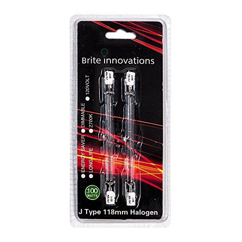Double Ended J Type Halogen Bulbs - 118mm, 100 Watts, 120 Volts, 2700K Warm White Light – Dimmable, Energy Saver, Long Life – 2 Pack – by Brite Innovations