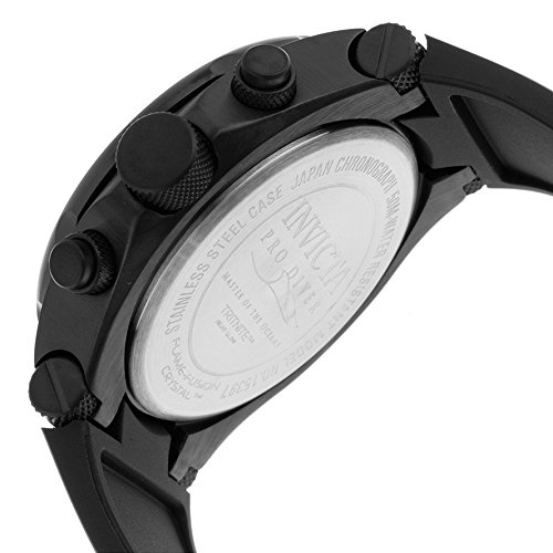 -. Binding : Watch -. Brand : Invicta -. Color : Black -. Department : mens -. EAN : 0886678189137 -. Feature : Chronograph functions with 60 second and 60 minute sub dials; date window at 3:00 / Black dial with silver tone and white hands, hour markers and Arabic numerals; luminous; unidirectional black ion-plated stainless steel bezel; flame fusion crystal; black ion-plated stainless steel case; black polyurethane strap / Japanese-quartz movement / Case diameter: 49mm / Water resistant to 165 feet -. Label : Invicta -. Manufacturer : Invicta -. Model : 15397 -. MPN : 15397 -. PackageQuantity : 1 -. PartNumber : 15397 -. ProductGroup : Watch -. ProductTypeName : WATCH -. Publisher : Invicta -. Size : Standard -. Studio : Invicta -. Title : Invicta Men's 15397 Pro Diver Analog Display Japanese Quartz Black Watch -. UPC : 886678189137