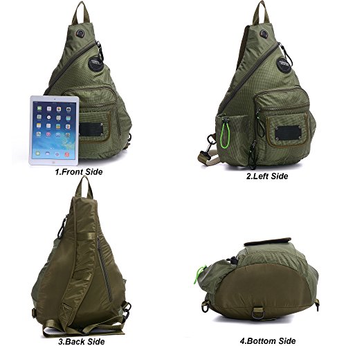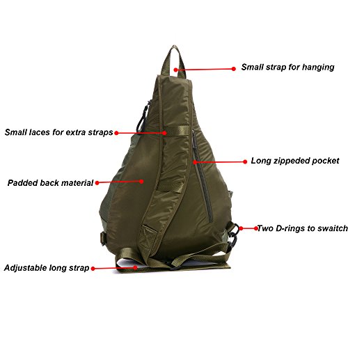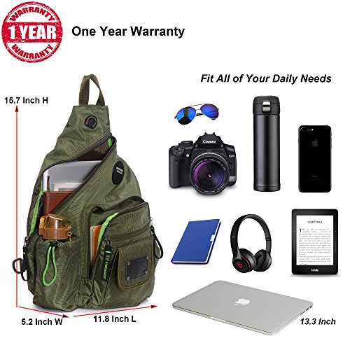 About This 13.3" Sling Bag: The multifunctional sling bag is being manufactured by high quality water resistant nylon. Multi main compartment with many size pockets can fit your various supplies and stationeries. The adjustable shoulder strap is definitely long enough to wear cross-body and on your front or back. This is a lightweight, quite roomy with different pockets sling backpack for your everyday activities.
