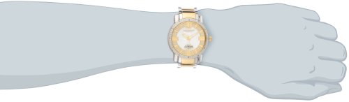 - Feature : Double layer dial, white mother of pearl inner, sparkling powder outer / Twelve genuine diamonds adorn the bezel / Two-tone gold and silver stainless steel bracelet / Swiss Quartz movement; Date display at 6 o'clock position / Water resistant to 165 feet (50 M): suitable for swimming and showering