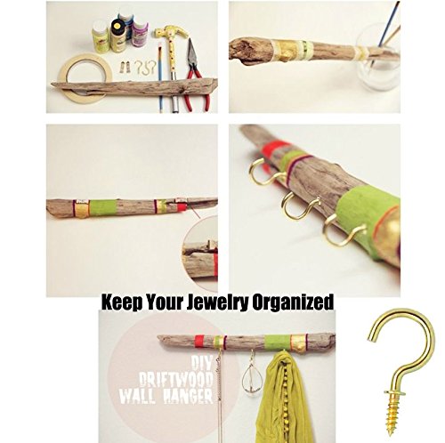 Shells 50PCS Gold Color Copper Plated Metal Cup Hooks Round End Screw Hooks Self-tapping Screws Hooks Question Mark Shape Hooks 0.83 Inch