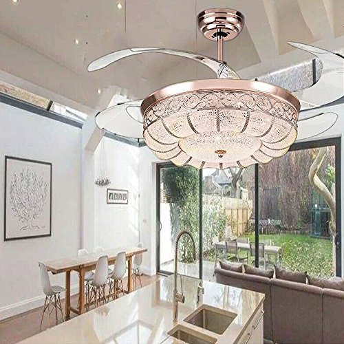 Retractable Blades With the special design of the 4 acrylic retractable fan blades,diameter 42 1/2" when the fan blades extended,suitable for a 30 sq.yd room.
