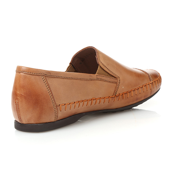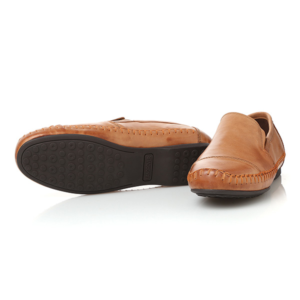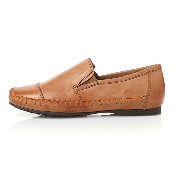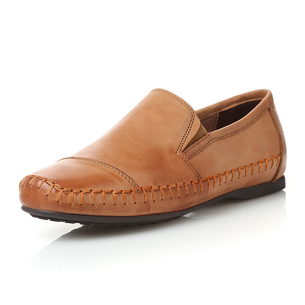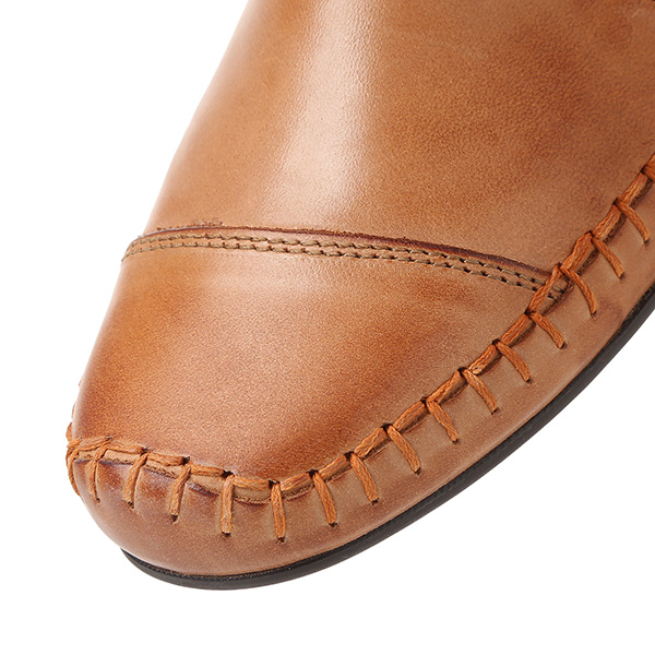봉합 디테일과 소재 사상감이 특징인 캐주얼 로퍼 스타일