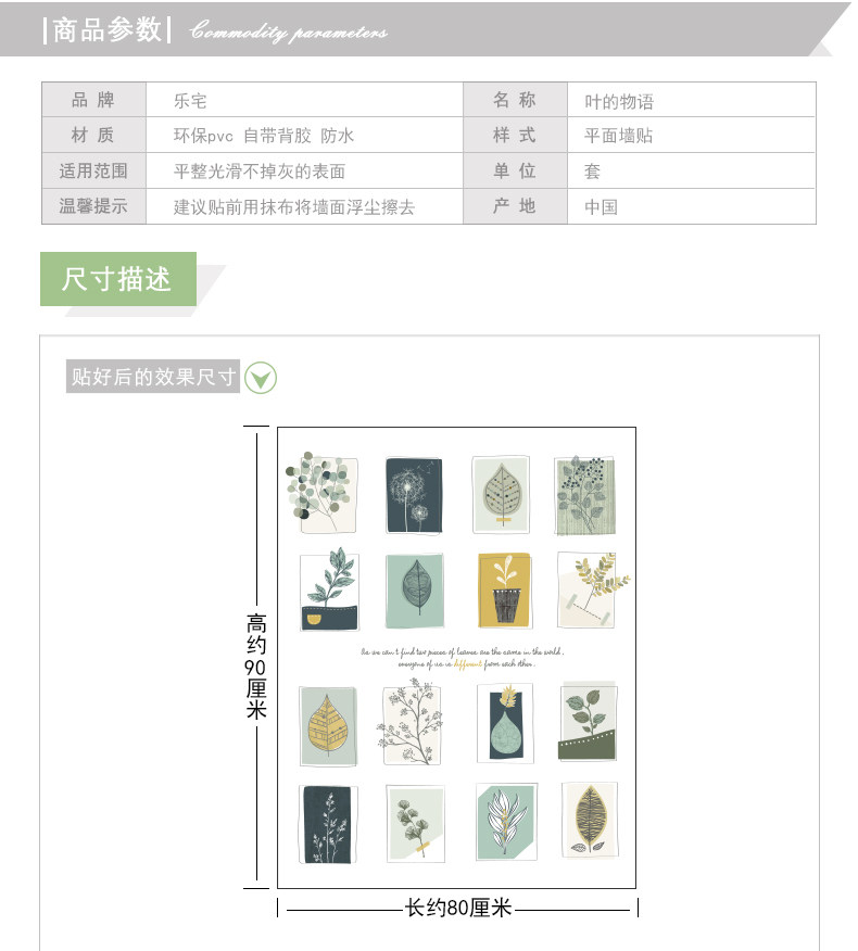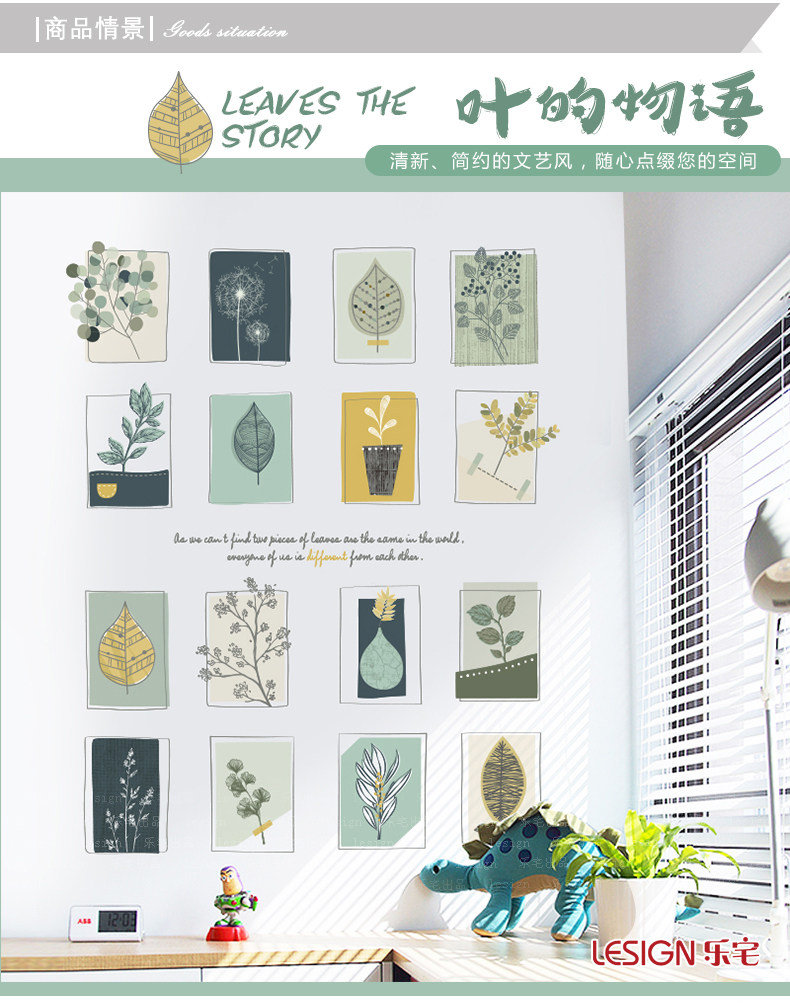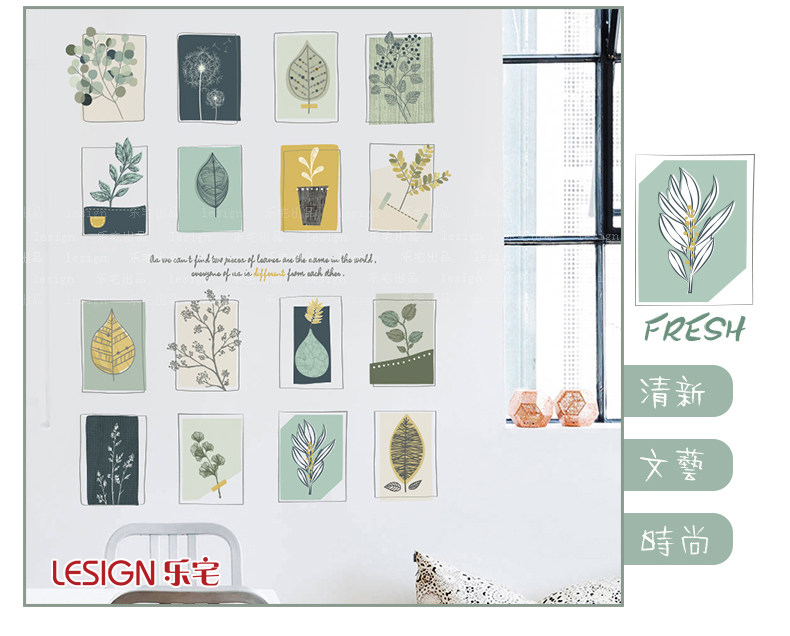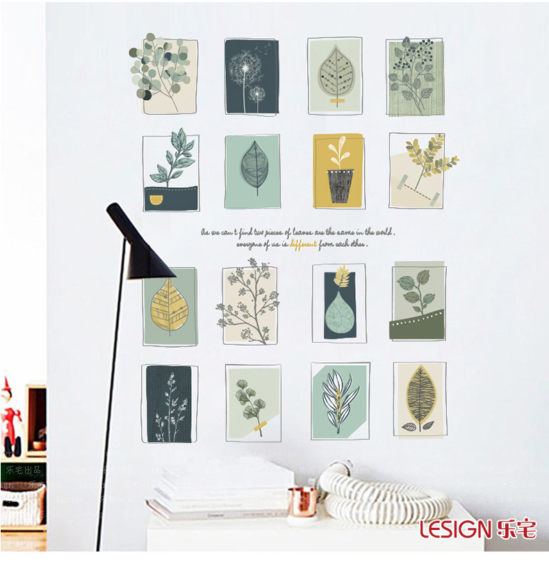 时尚清新树叶子相框墙贴纸简约文艺客厅温馨卧室床头素雅装饰贴画