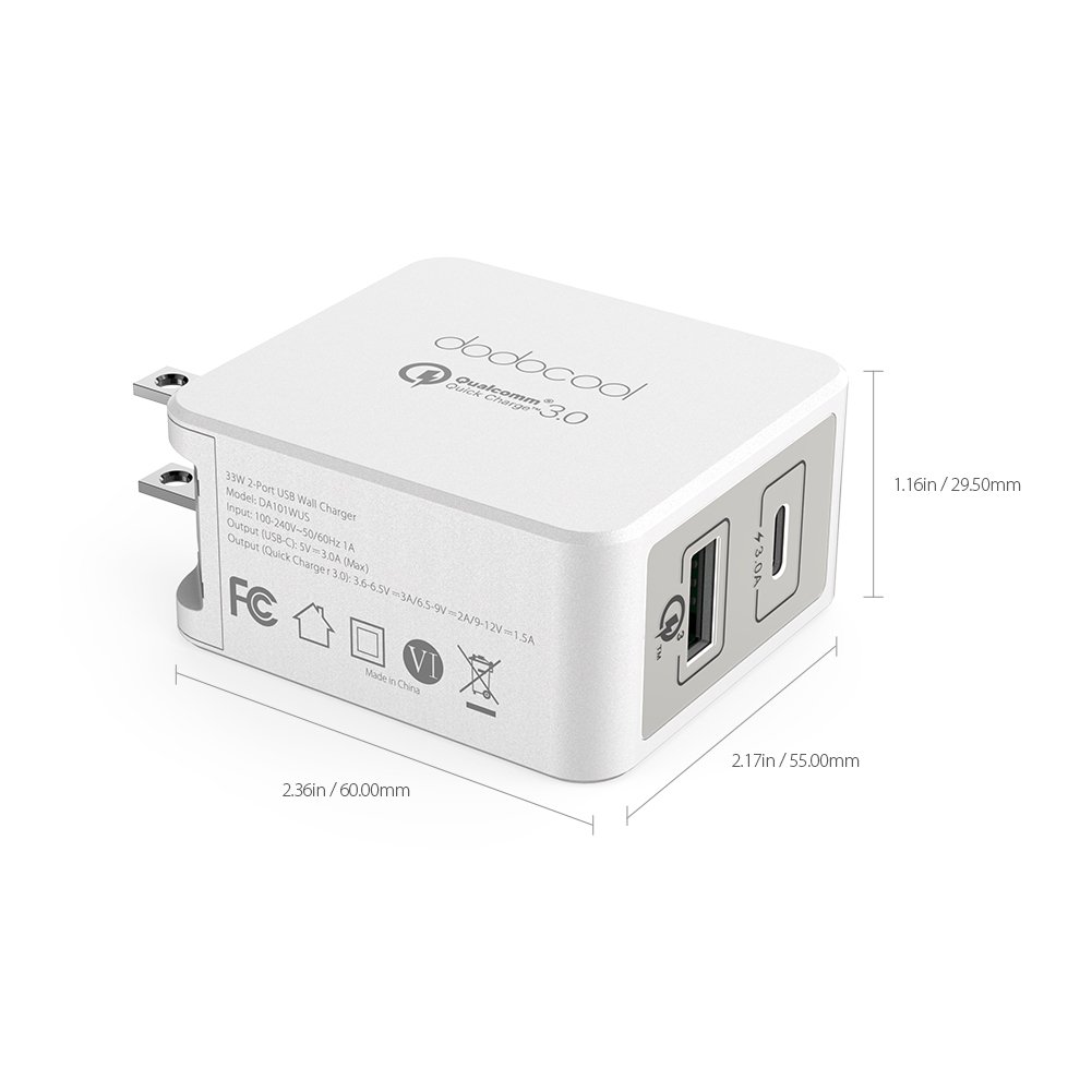 dodocool 33W 2 port USB quick charger USB-C Type-C charger