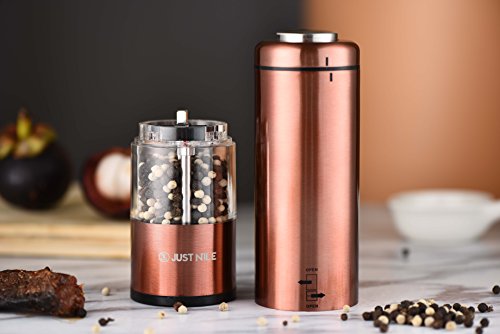 JustNile AUTOMATIC Electronic Stainless Steel Salt & Pepper Mill Set with Ceramic Grinder & Adjustable Coarseness - Bronze, Set of 2