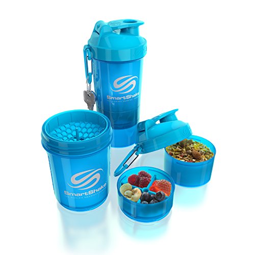 SmartShake Original 2GO Bottle, 20 oz Shaker Cup, Neon Blue