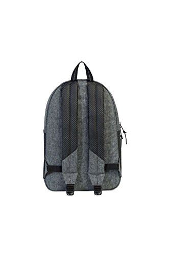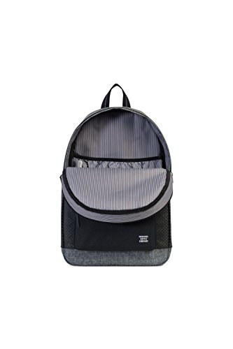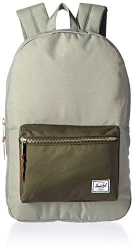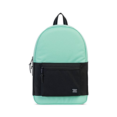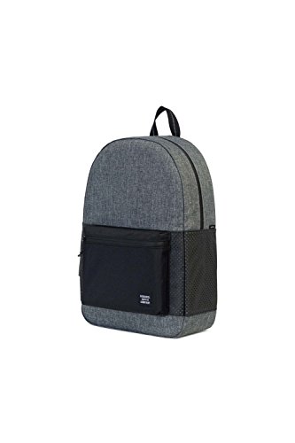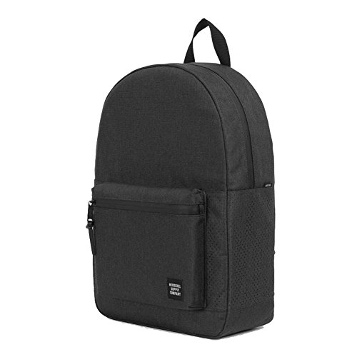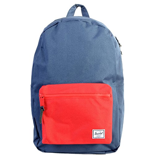 A classic Herschel Supply Co. backpack with a zip front pouch and a key clasp. The main compartment has a laptop sleeve and a small media pocket with a pass-through port for headphone wires. Padded shoulder straps and back. Lined.Feature