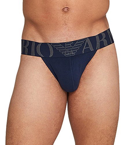 Emporio Armani Men's Stretch Cotton Megalogo Jockstrap, Marine, S