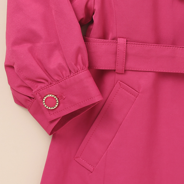 상품설명 톡톡 튀면서도 고급스러운 핫핑크 컬러의 트렌치 코트입니다. 미니 더블 스타일로 앞중심에 컬러매칭에 골드 테두리 단추를 장식해 주어서 전체적으로 모던하면서도 고급스러운 느낌을 더해주었으며 전체적인 라인이 에이라인으로 입었을때 아웃라인이 예쁘게 떨어집니다. 프랜치캣만의 느낌이 담긴 트렌치 코트로 완벽한 봄코디를 완성해보세요.