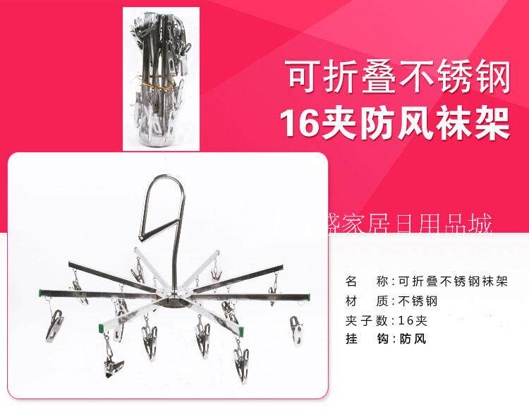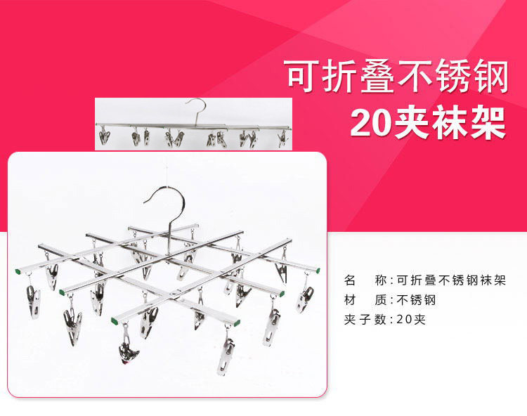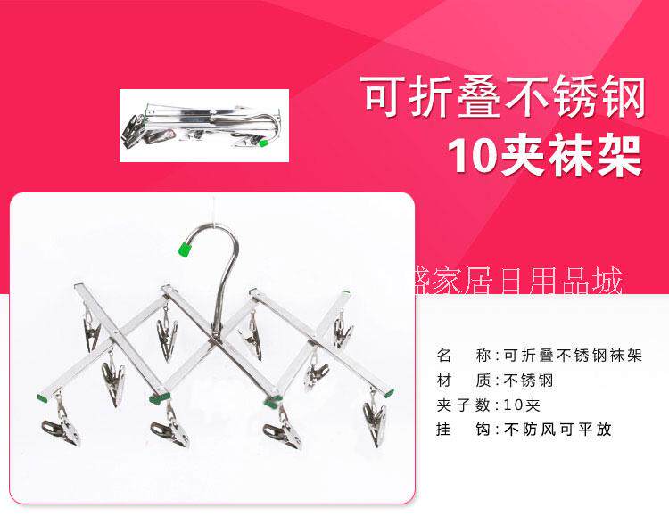 Foldable stainless steel, 10 frame clip socks. Foldable no wind