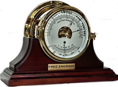 -. Title : Nautical Porthole Barometer Thermometer with Mahogany Stand