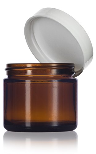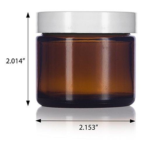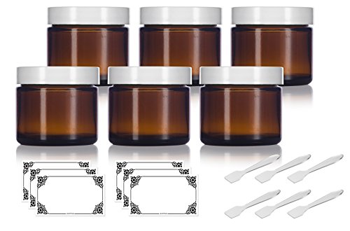 Amber Glass Straight Sided Jar with White Foam Lined Lids - 2 oz (6 Pack) + Spatulas and Labels