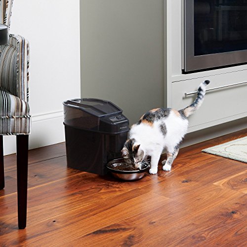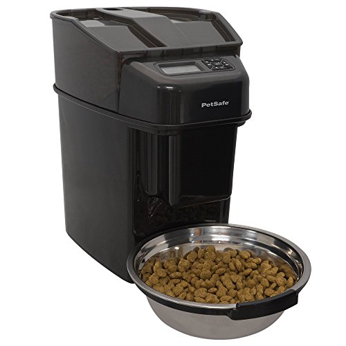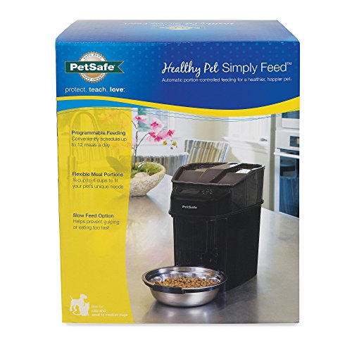 Studio : PetSafe Publisher : PetSafe Binding : Misc. Product Description The PetSafe Healthy Pet Simply Feed is a convenient, automatic feeder that makes it easy to feed your dog or cat on time. This fully programmable pet feeder automatically gives your furry friend each meal based on the portion and schedule you set. Customize flexible portions from 1/8 - 4 cups and up to 12 meals per day. The unique conveyor technology dispenses food for the best portion control and accuracy and helps prevent jamming. The feeder works with most dry kibble and semi-moist pet foods. The Slow Feed option is perfect for pets that eat too quickly. It dispenses scheduled meals slowly over a 15-minute period to help prevent gulping, vomiting, and bloat. The stainless steel bowl is hygienic and easy to clean; just toss it in the dishwasher when it gets dirty. With portion control and a consistent feeding routine, the PetSafe Healthy Pet Simply Feed makes it easy to manage your pet's weight or help with weight loss for your overweight pet. 0