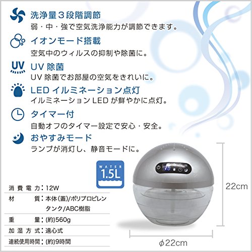 원본상품명: アロマ LEDライト 点 UV搭載 空洗器 Dr.Airball シルバ K30