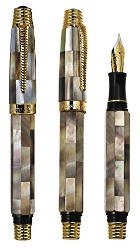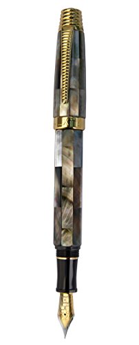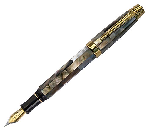 -. Title : Xezo Medium Point Fountain Pen Handcrafted from Natural Black Mother of Pearl.18-Karat Gold-Plated. (Maestro Black MOP FM)