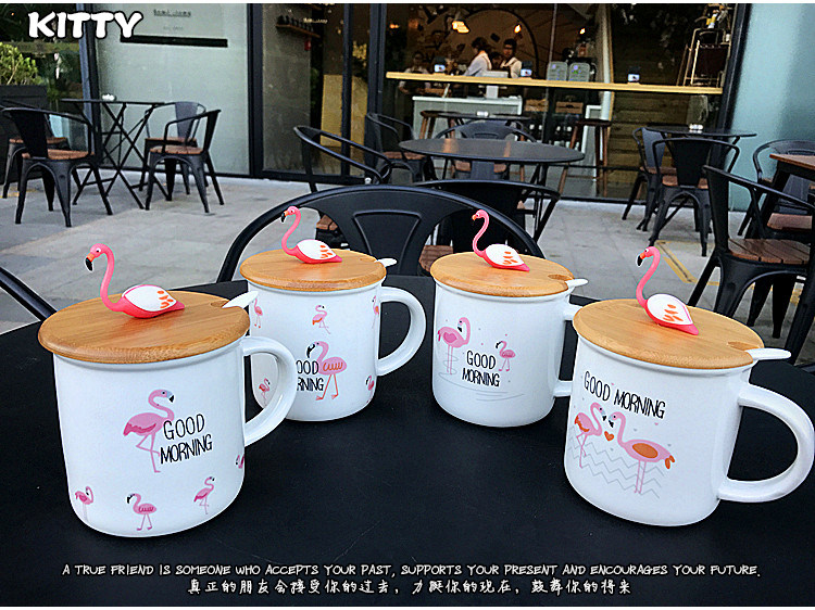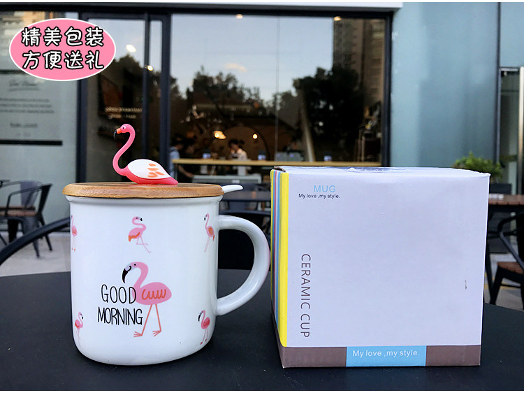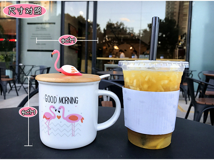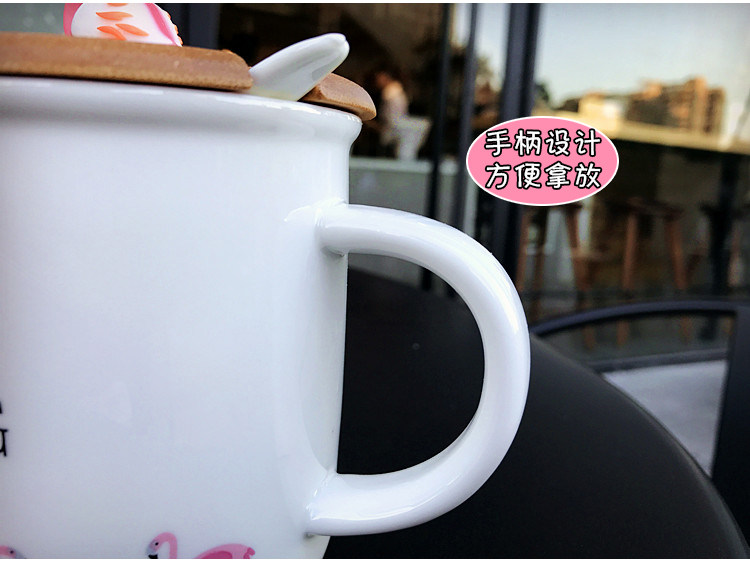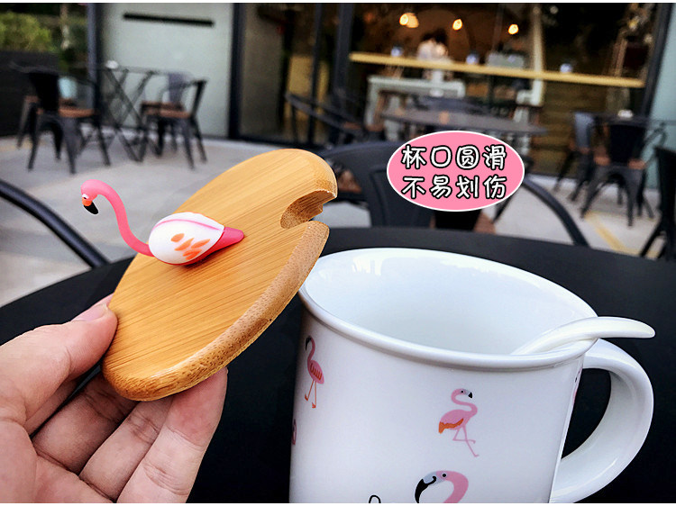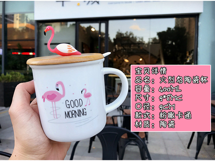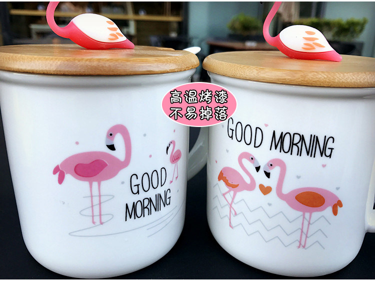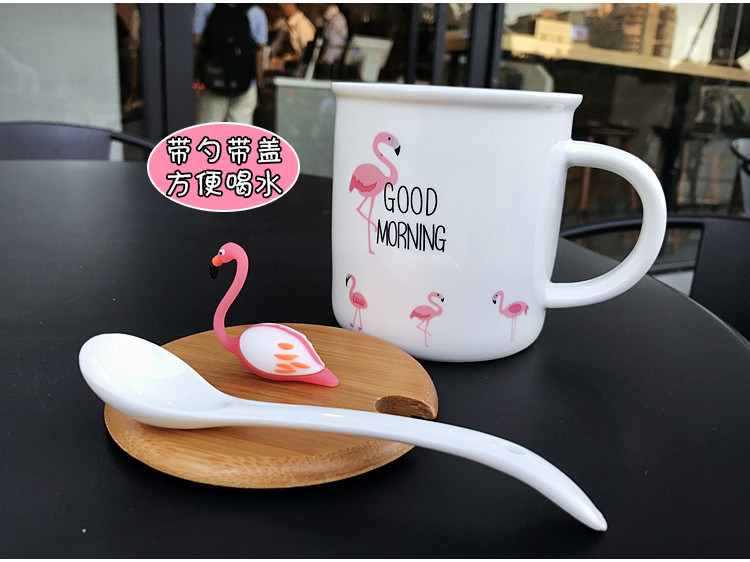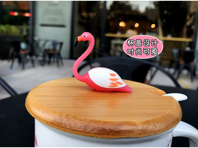 粉嫩火烈木盖鸟马克陶瓷水杯子女士可爱带勺带盖早餐牛奶咖啡杯子