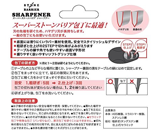대망의,슈퍼 스톤 베리어 부엌칼에 최적인 부엌칼 (칼 따위를) 갊.슈퍼 스톤 베리어 샤프《나》!지금까지의 물건과 차이,황(칼 따위를) 갊 마무리 2종류의 STEP에 칼의 끝을 날카롭게 가는 모아 두고, 대합인이 오래 갑니다.일반의 부엌칼로도 쓸만하고, 칼이 드는 정도가 부활!세라믹 부엌칼이나 특수한 부엌칼(빵 잘라 등)고, 후칼의 부엌칼은 갈 수 없습니다.