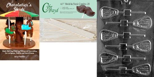 Cybrtrayd 'Lacrosse Lolly' Sports Chocolate Candy Mold with 25 4.5-Inch Lollipop Sticks and Chocolatier's Guide