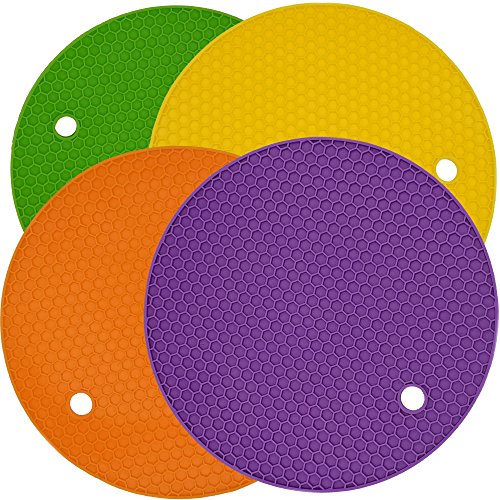 Multipurpose Silicone Pot Holders, Trivet, Table Insulation Mat, Heat Resistant Coasters, Non Slip Jar Openers, Spoon Rests - Set of 4 (4-Round)