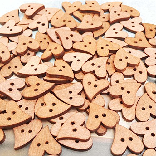 Efivs Arts 2 Holes Heart Shape Wood Wooden Buttons for Sewing Crafting Pack of 100(BROWN)