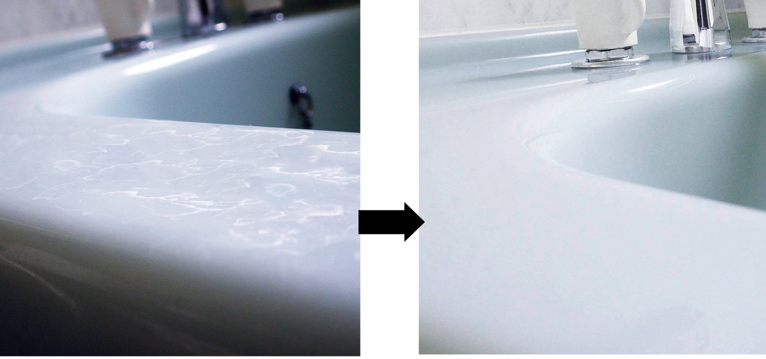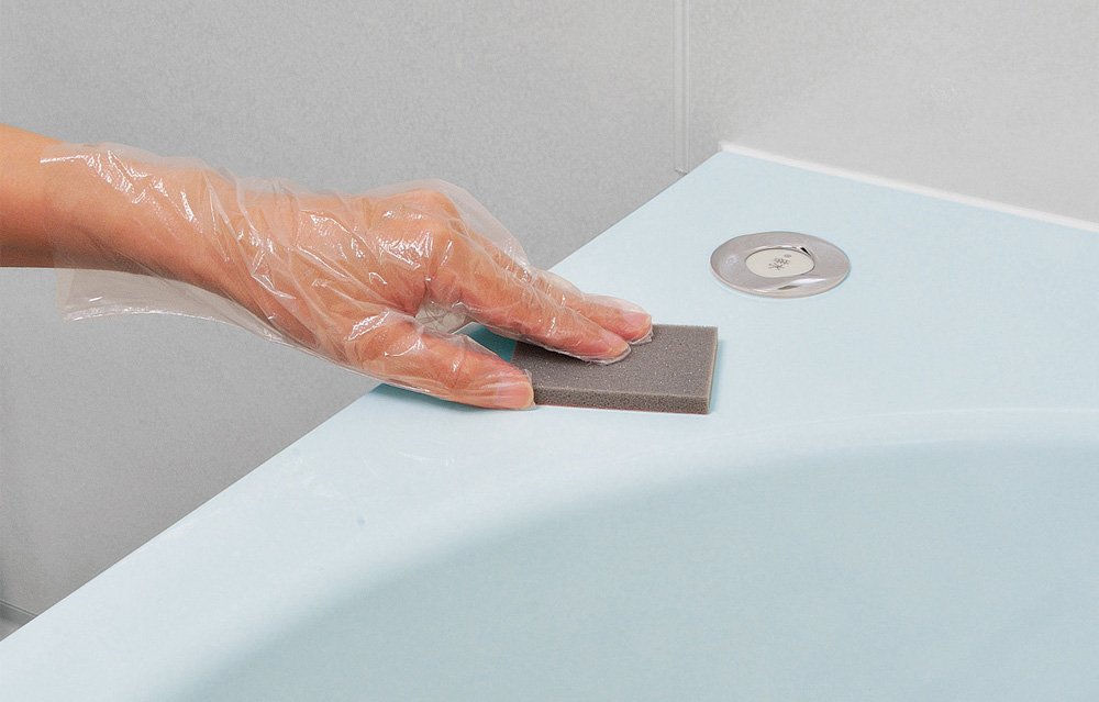 Stubborn bathscarpers in the bathroom, polishing pad that scrapes off the water scale