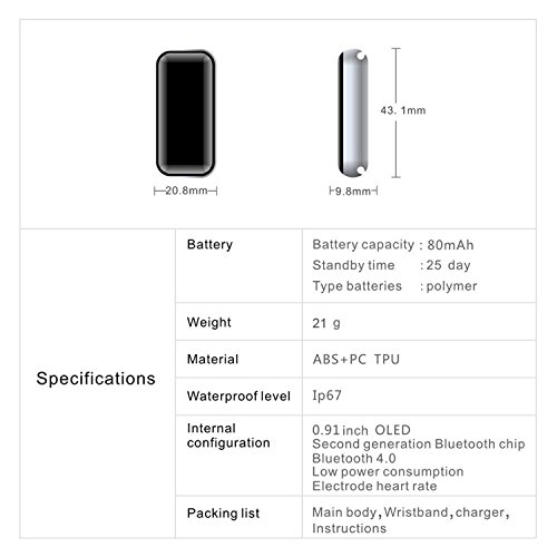 -. Feature : OLED DISPLAY: OLED display screen,more vivid and attractive . / MULTI-FUNCTIONAL APP:You can sync the recording of the test indicators,to permanently store data. / SMART LIFE:Heart rate,Motion monitoring,Sleep monitoring,Call reminder,Social reminder etc. / WATERRESISTANT-IP67: Super waterproof grade,it can be used for handwashing, bathing, rain etc. / What You Get: Longess fitness tracker x1, cable with clamp x1, English manual x1, Longess welcome guide x1, Longess fan-favorite 18-month warranty and convenient customer service.