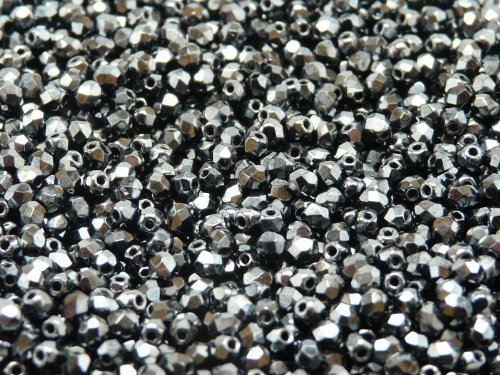 100 pcs Czech Fire-Polished Faceted Glass Beads Round 3mm Jet Hematite