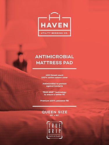 -. Title : Haven 400 Thread Count Antimicrobial Mattress Pad, White