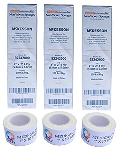 3 Pack Of 2x2 Non Woven 4-Ply Sponges Packs Of 200 Plus 3 Rolls Of Vakly Medical Tape (3)