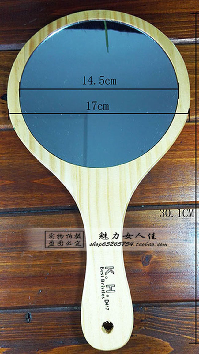 最标准的美容镜,连手柄长28cm左右,连木边宽13.5cm左右,这个尺寸的是最实用的,!~镜子为手工制品,镜框内部边缘偶见毛刺和不平的,不属于质量问题,高要求,高品质的亲可以绕道,请亲们先看清再下手哦!谢谢合作!