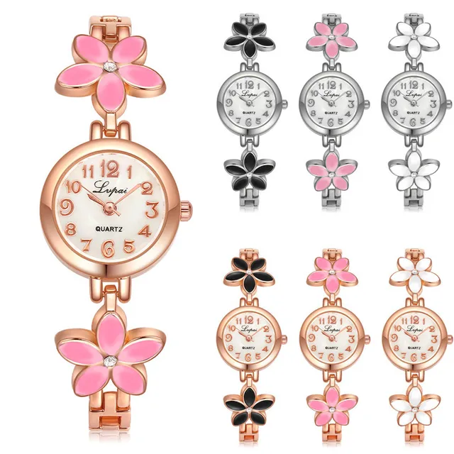 상품 내용 꽃 로즈 골드 팔찌 시계 여성 패션 캐주얼 쿼츠 시계 라인 석 손목 여자 팔찌 여성 시계 도매 무료 배송 특징: