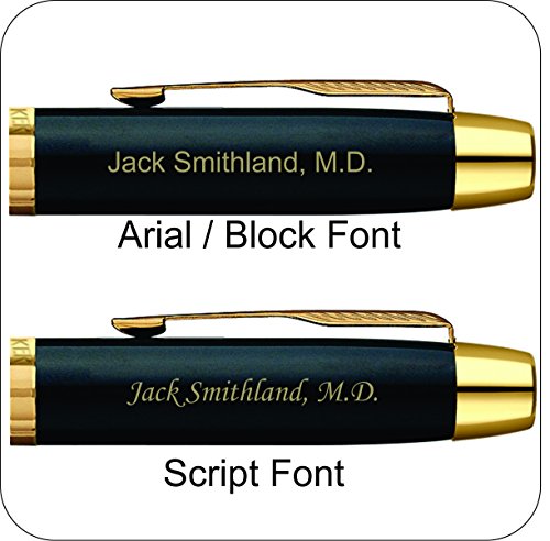 -. Binding : Office Product -. Brand : Dayspring Pens -. Color : Black with gold trim -. Feature : Free Engraving Included by Dayspring Pens, up to 24 characters and spaces max / Personalized Parker IM Pen, rollerball with removable cap / Comes in a Parker pen box / Black writing ink -. Label : Parker Pens -. Manufacturer : Parker Pens -. MPN : GP-613 -. PackageQuantity : 1 -. PartNumber : GP-613 -. ProductGroup : Office Product -. ProductTypeName : OFFICE_PRODUCTS -. Publisher : Parker Pens -. Studio : Parker Pens -. Title : Engraved / Personalized Parker IM Black Gold Trim Rollerball Pen