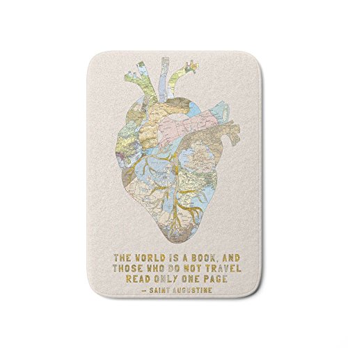 -. Brand : Society6 -. Feature : The perfect bath mats: fuzzy, foamy and finely enhanced with brilliant art. / With a soft, quick-dry microfiber surface, memory foam cushion and skid-proof backing, our shower mats are a cut above your typical rug. / Keep them clean with a gentle machine wash (no bleach!) and make sure to hang dry. / An independent artist profits from every purchase with Society6. -. Label : Society6 -. Manufacturer : Society6 -. MPN : s6-4459830p55 -. PartNumber : s6-4459830p55 -. ProductGroup : Home -. ProductTypeName : HOME_BED_AND_BATH -. Publisher : Society6 -. Studio : Society6 -. Title : Society6 A Traveler's Heart + Quote Bath Mat