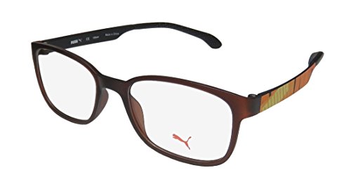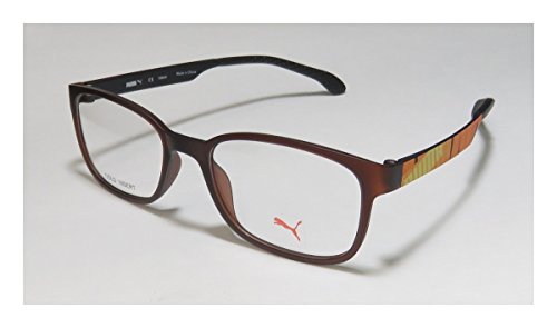 Brand: Puma Style: 15440 Gender: unisex Frame Type: full-rim Frame Material: plastic Case: eleganzo The frame is fully rx-able and can be fitted with prescription and/or tinted lenses at most optical stores. Please note that factory demo lenses have a logo stamped on them in ink. These eyeglasses are crafted from high quality, durable premium acetate plastic. Please keep in mind that original case is not included with this frame. However, we will include an Eleganzo hard case at no extra charge to keep your eyeglasses protected. These eyeglasses retail for $140.00 at upscale stores that carry designer frames. Save your money and get them here! The pictures cannot fully reflect the beauty of this piece of designer eyewear. These eyeglasses look even more elegant in real life. This is one of the most popular Puma styles on the market right now. 0 |
